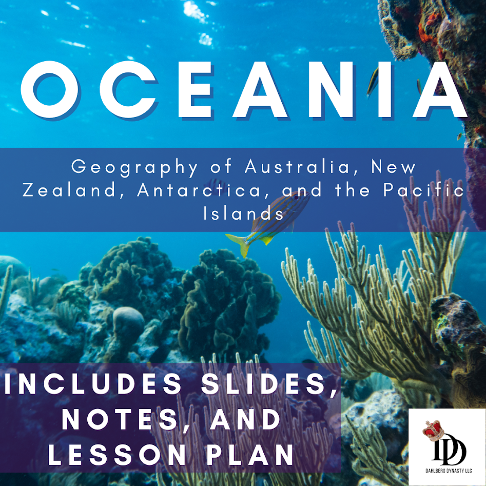 Dive into the rich and diverse geography of Oceania with this all-inclusive lesson bundle! Perfect for 9th-grade World Geography or Social Studies classrooms, this resource provides everything you need to teach about the physical and human geography of Australia, New Zealand, the Pacific Islands, and Antarctica.